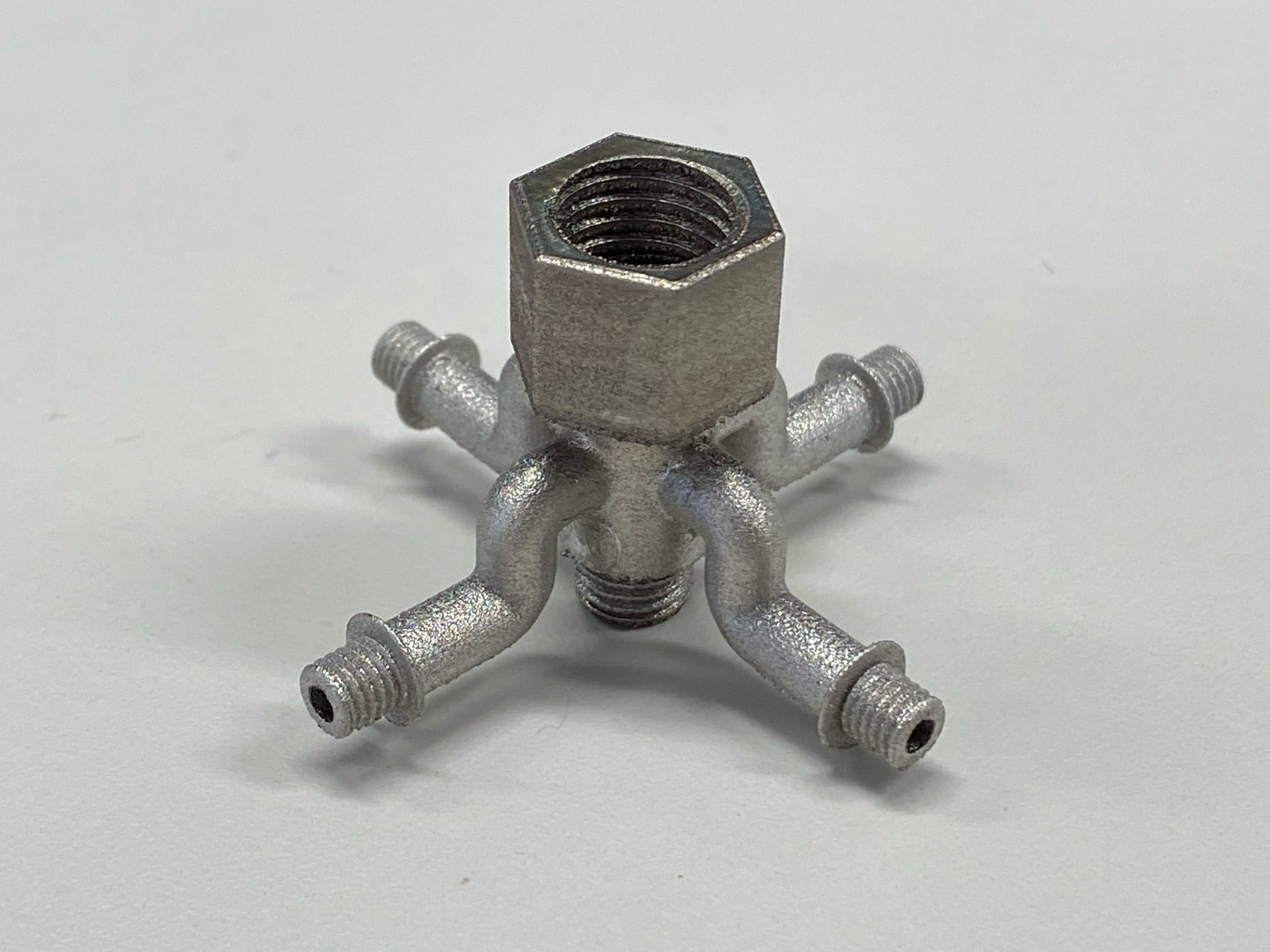 金属造形(LB-PBF)金属の粉末にレーザーを照射し溶融凝固させ積層する。 造形品の機械強度も高く、アルミ、ステンレス、インコネルなどが出力可能。