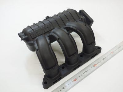 画像を拡大 画像を拡大インテークマニホールド(耐久試験用)材質 PA6-GF30% 数量 10個 サイズ X400 * Y250 * Z200 mm 工程 マスターは光造形、